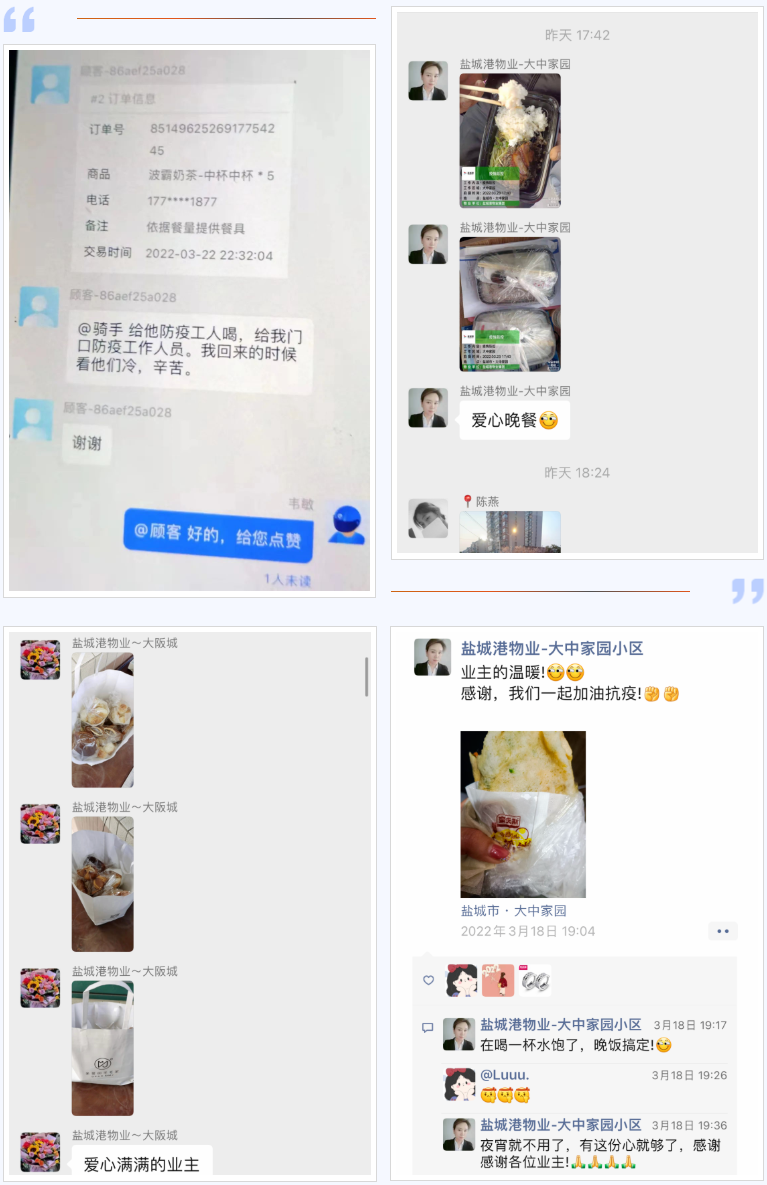鹽城港物業(yè)人對防疫工作的責(zé)任與擔(dān)當(dāng),業(yè)主們看在眼里,暖在心里。有的自發(fā)捐助口罩、食品、暖寶寶,甚至牛奶、水果給值班“戰(zhàn)士”,讓戰(zhàn)斗在一線的物業(yè)人感到溫暖,聲聲感謝,是肯定,更是責(zé)任。他們時刻要面對疫情,在逆行中研究措施,在奔跑中調(diào)整姿勢。眾志成城、攻堅克難,防控疫情不松懈,這是一份植根鹽城港物業(yè)人內(nèi)心的宣言??挂咔?、守平安,鹽城港物業(yè)人用實際行動共同守護著我們美麗的家園。