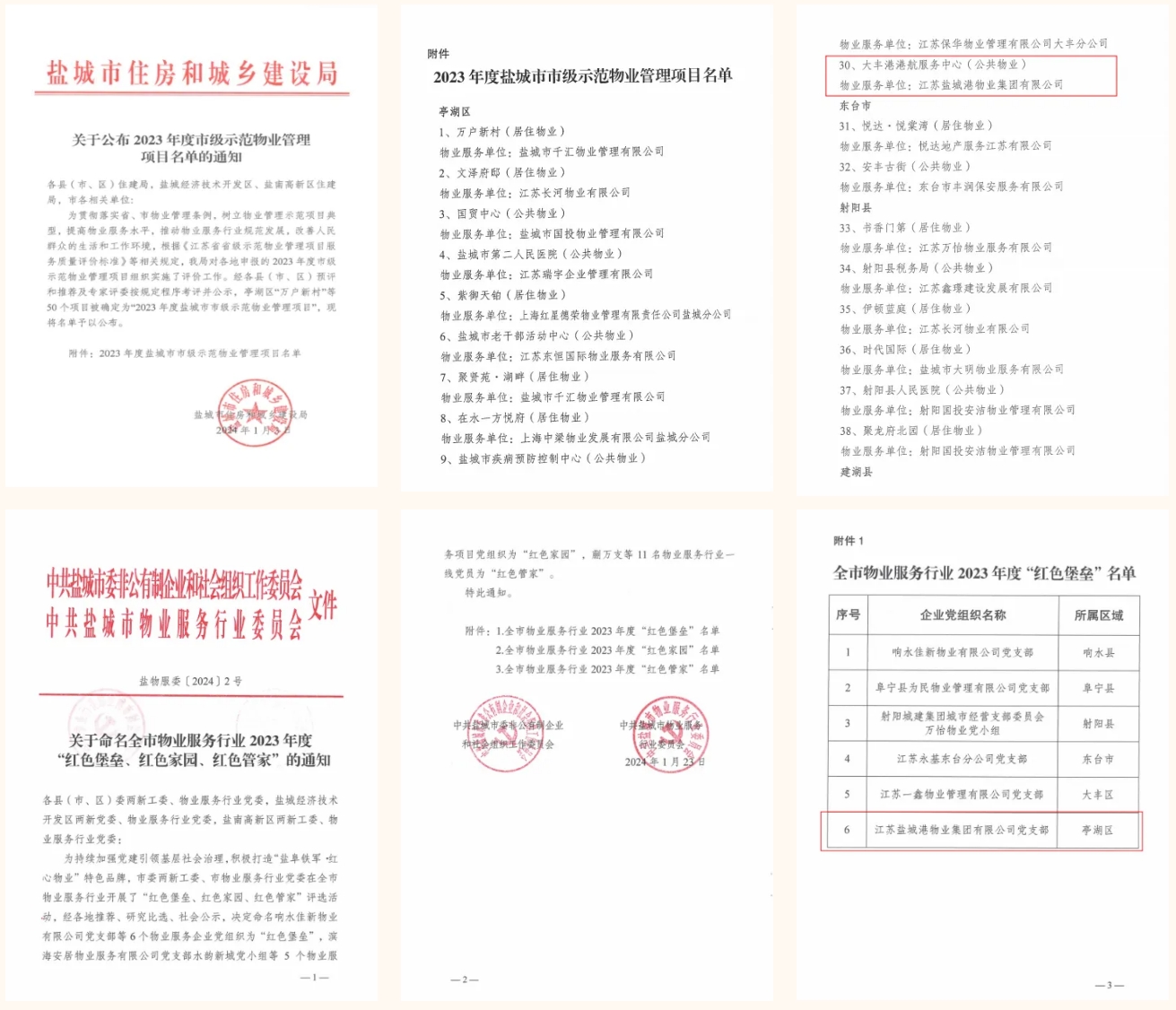 日前,市住建局公布關(guān)于2023年度市級(jí)示范物業(yè)管理項(xiàng)目名單,鹽城港物業(yè)集團(tuán)在管項(xiàng)目——大豐港港航服務(wù)中心(公共物業(yè))被評(píng)為“2023年度鹽城市市級(jí)示范物業(yè)管理項(xiàng)目”;鹽城港物業(yè)集團(tuán)黨支部被評(píng)為全市物業(yè)服務(wù)行業(yè)2023年度“紅色堡壘”。