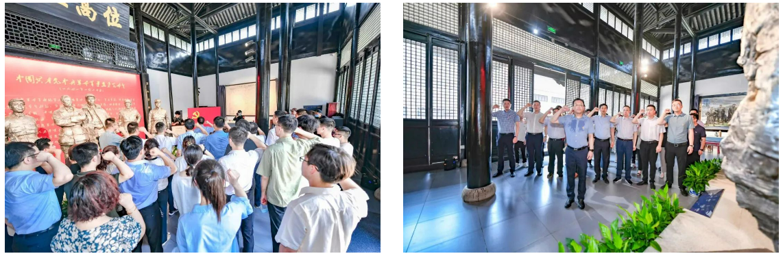 在講解員的引導(dǎo)與講解下,全體干部職工通過文物、史料、圖片等展覽,走進(jìn)戰(zhàn)火紛飛的抗日戰(zhàn)爭(zhēng)歲月,重溫劉少奇、陳毅等老一輩革命家率領(lǐng)新四軍將士堅(jiān)持華中敵后浴血奮戰(zhàn)的艱苦斗爭(zhēng)歷程,感受到新四軍的金戈鐵馬、熱血雄魂,實(shí)地接受了一次深刻的黨史教育,實(shí)景實(shí)情感悟革命先輩們攻堅(jiān)克難、甘于奉獻(xiàn)的大無畏革命精神。