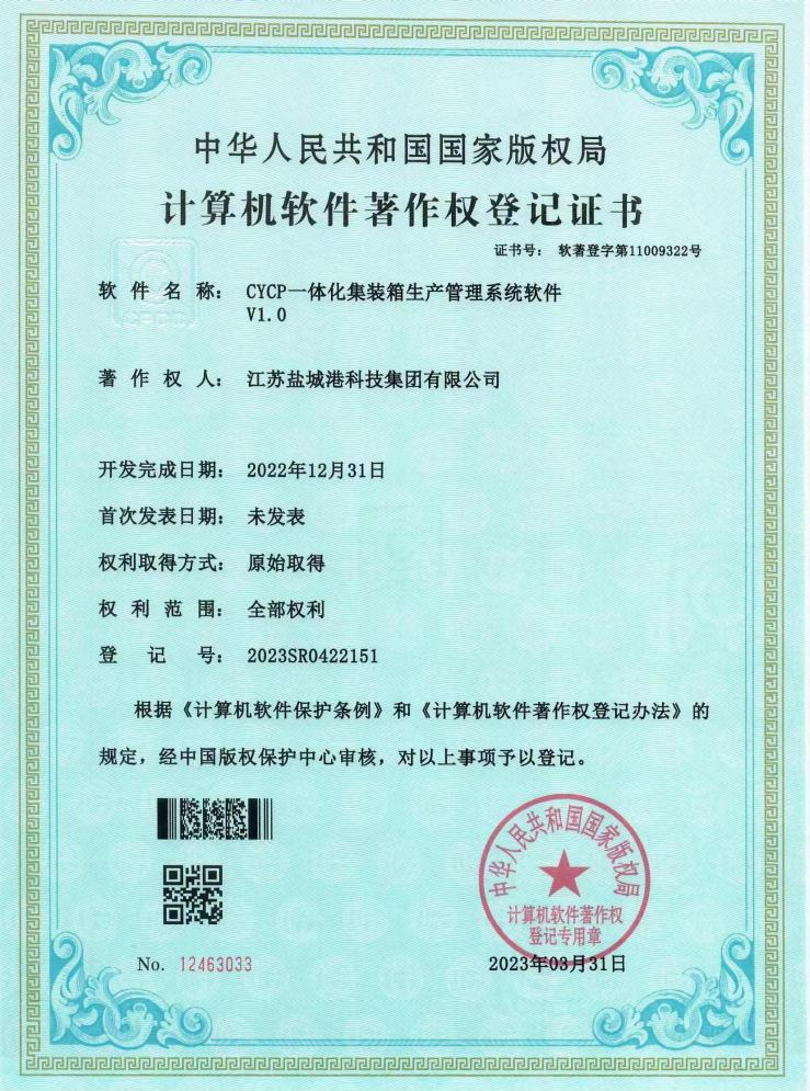 喜報(bào)!鹽城港首個(gè)生產(chǎn)管理系統(tǒng)軟件獲國家軟件著作權(quán)