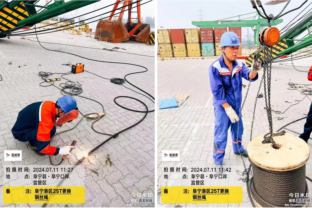 坐標(biāo)定位:阜寧港區(qū)25t固定吊的鋼絲繩更換項(xiàng)目現(xiàn)場(chǎng)