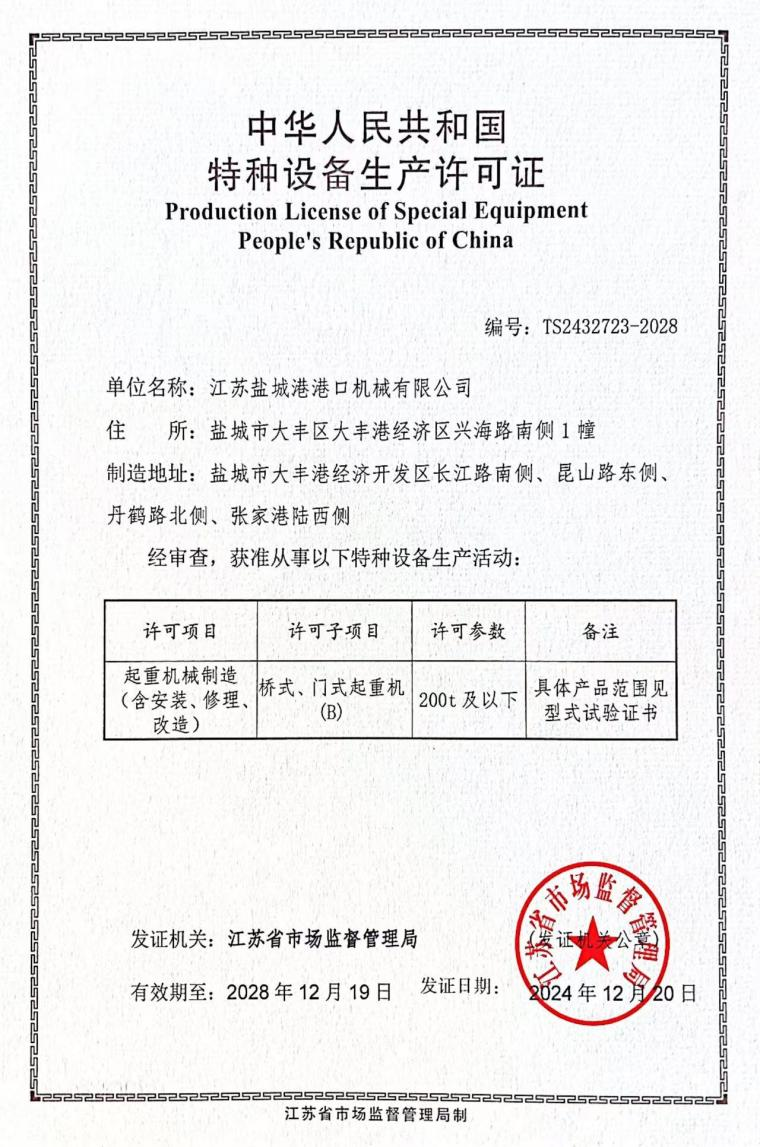 下一步,港機(jī)公司將充分發(fā)揮橋式、門式起重機(jī)(B級(jí))特種設(shè)備生產(chǎn)許可證的優(yōu)勢(shì),不斷提升企業(yè)的核心競(jìng)爭(zhēng)力,為港口及相關(guān)行業(yè)的發(fā)展提供更加優(yōu)質(zhì)的產(chǎn)品和服務(wù),助力科技集團(tuán)推動(dòng)科技創(chuàng)新成果轉(zhuǎn)化實(shí)際應(yīng)用,為鹽城港集團(tuán)高質(zhì)量發(fā)展做出更大的貢獻(xiàn)。