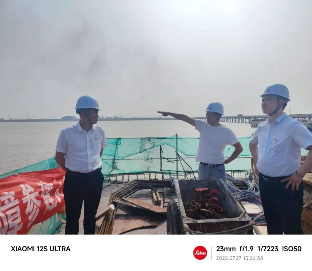 在深入基層一線現(xiàn)場,慰問組觀摩了濱海港區(qū)U型港池項目施工現(xiàn)場、射陽港區(qū)3.5萬噸航道疏浚工程及大豐港區(qū)工作船安保設(shè)施工程等項目現(xiàn)場,每到一處都仔細(xì)查閱施工時間記錄及防暑降溫物資發(fā)放登記表,確保每個工人都能合理安排施工作業(yè)時間,及時領(lǐng)取到防暑降溫物資。慰問組還檢查了現(xiàn)場施工環(huán)境、疫情防控及施工日志登記簿,詳細(xì)了解各項目施工及防疫工作實施情況。