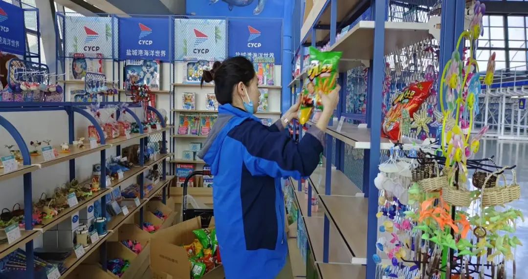 景區(qū)各小組成員在部門負(fù)責(zé)人的帶領(lǐng)下積極備戰(zhàn)活動(dòng)前的各項(xiàng)準(zhǔn)備工作。此次活動(dòng),結(jié)合大豐港動(dòng)物園客流量資源優(yōu)勢(shì),借助海洋劇場(chǎng)海豚錯(cuò)峰表演時(shí)間,將游客進(jìn)行引流。同時(shí),為滿足游客多樣化需求,促進(jìn)景區(qū)二次消費(fèi),海洋劇場(chǎng)商品柜臺(tái)準(zhǔn)備了數(shù)量充足、類別豐富的商品品類,工作人員正在提前往商品陳展架上擺滿各式各樣的商品。