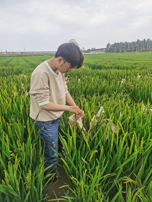 稻田里,一位20來歲的青年小伙扎在專家群中,格外顯眼。他是科研團隊新進的科研人員顧睿?!八居H本開始抽穗便要忙著做雜交,每天清晨早早下地,拿個板凳坐田里,開始剪穎殼、去雄、套袋。”顧睿說。烈日炎炎下,一手拿剪刀,一手拿剪好的穗子,逐袋抖粉,并做記號,分分鐘汗就能濕透衣服。他說:“比起老一輩的育種家,這點苦不算什么,還有很多要向他們學(xué)習(xí)。大學(xué)里提前接觸各類農(nóng)學(xué)知識,等于是站在巨人的肩膀上起步,我們應(yīng)該把這種眼界轉(zhuǎn)化為實踐優(yōu)勢。”顧睿認為,農(nóng)業(yè)并不只有苦和累,更是年輕人大展作為的廣闊天地。