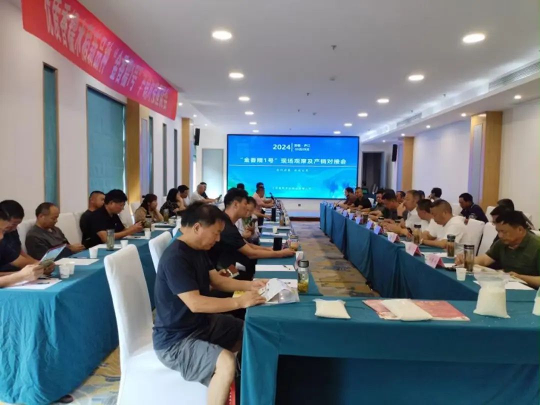 近日,農(nóng)業(yè)科技集團(tuán)在安徽省廬江縣召開(kāi)水稻品種“金香糯1號(hào)”現(xiàn)場(chǎng)觀(guān)摩暨產(chǎn)銷(xiāo)對(duì)接會(huì)。來(lái)自江蘇和安徽的種子經(jīng)銷(xiāo)商、種植大戶(hù)、稻米加工企業(yè)負(fù)責(zé)人以及糧食經(jīng)銷(xiāo)商齊聚一堂,共同探討“金香糯1號(hào)”訂單種植產(chǎn)銷(xiāo)對(duì)接合作事宜。