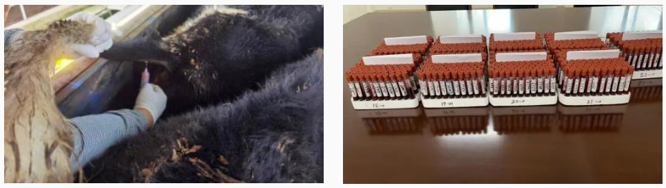 血樣采集是確保檢測(cè)工作準(zhǔn)確無(wú)誤的基礎(chǔ),更是嚴(yán)防境外動(dòng)物傳染病傳入國(guó)門的第一道防線。為保證采血檢疫工作的順利完成,駐場(chǎng)海關(guān)人員、及牧業(yè)公司駐場(chǎng)人員在炎熱高溫的天氣下,穿著隔離防護(hù)衣,佩戴面罩、口罩、手套持續(xù)工作。每天采集1200-1400管血樣,確保在96小時(shí)內(nèi)完成所有牛只血樣采集工作。
