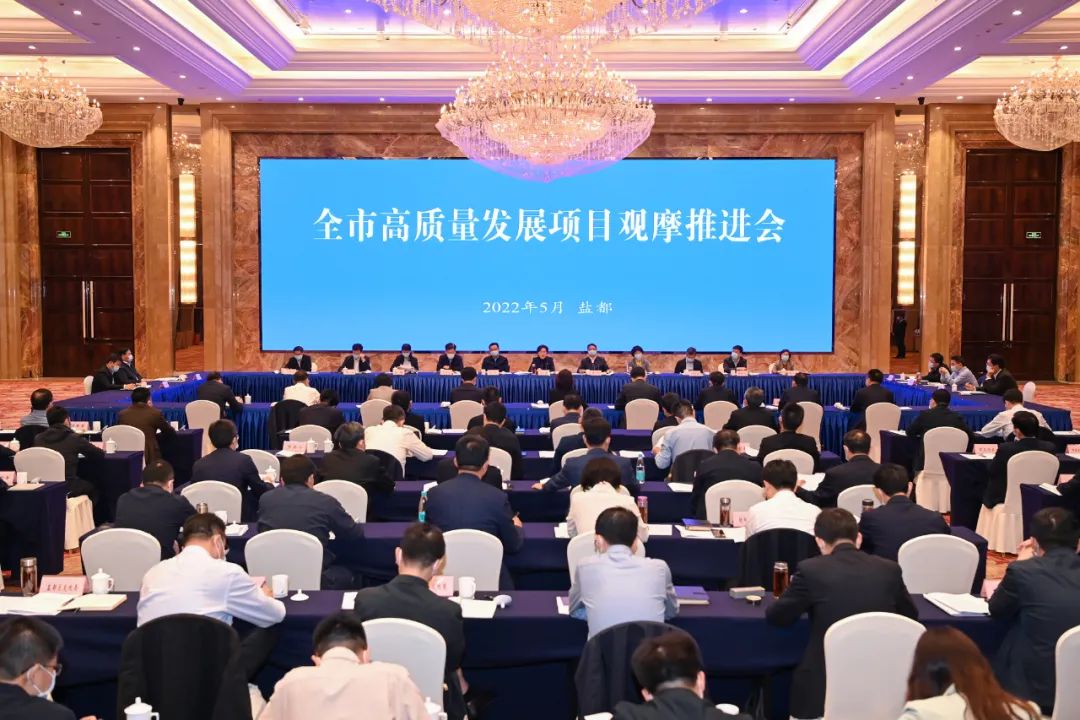 5月10日至11日,我市在鹽都區(qū)召開全市高質(zhì)量發(fā)展項目觀摩推進會。市委書記徐纓主持會議并講話,強調(diào)要堅持以習近平新時代中國特色社會主義思想為指導(dǎo),深入貫徹落實習近平總書記在中央政治局常委會會議上的重要講話精神,按照省委常委會會議部署,堅持穩(wěn)字當頭、穩(wěn)中求進,堅定信心、保持定力,緊扣高質(zhì)量發(fā)展要求,把“疫情要防住、經(jīng)濟要穩(wěn)住、發(fā)展要安全”的責任和措施落到實處,確保完成全年各項目標任務(wù),勇當沿海地區(qū)高質(zhì)量發(fā)展排頭兵,在大戰(zhàn)大考中奮力奪取疫情防控和經(jīng)濟社會發(fā)展雙勝利。市委副書記、市長周斌,市委常委、市人大常委會主任王榮,市政協(xié)主席陳紅紅,市委副書記羊維達等出席。