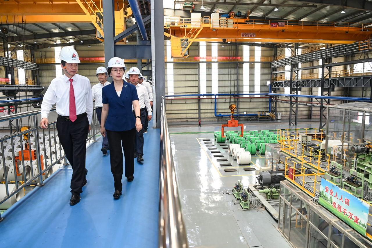 在高卡輕合金項(xiàng)目車(chē)間,徐纓詳細(xì)了解工藝裝備、核心技術(shù)和產(chǎn)品性能,鼓勵(lì)企業(yè)搶占更廣市場(chǎng),盡快實(shí)現(xiàn)達(dá)產(chǎn)滿(mǎn)產(chǎn)。