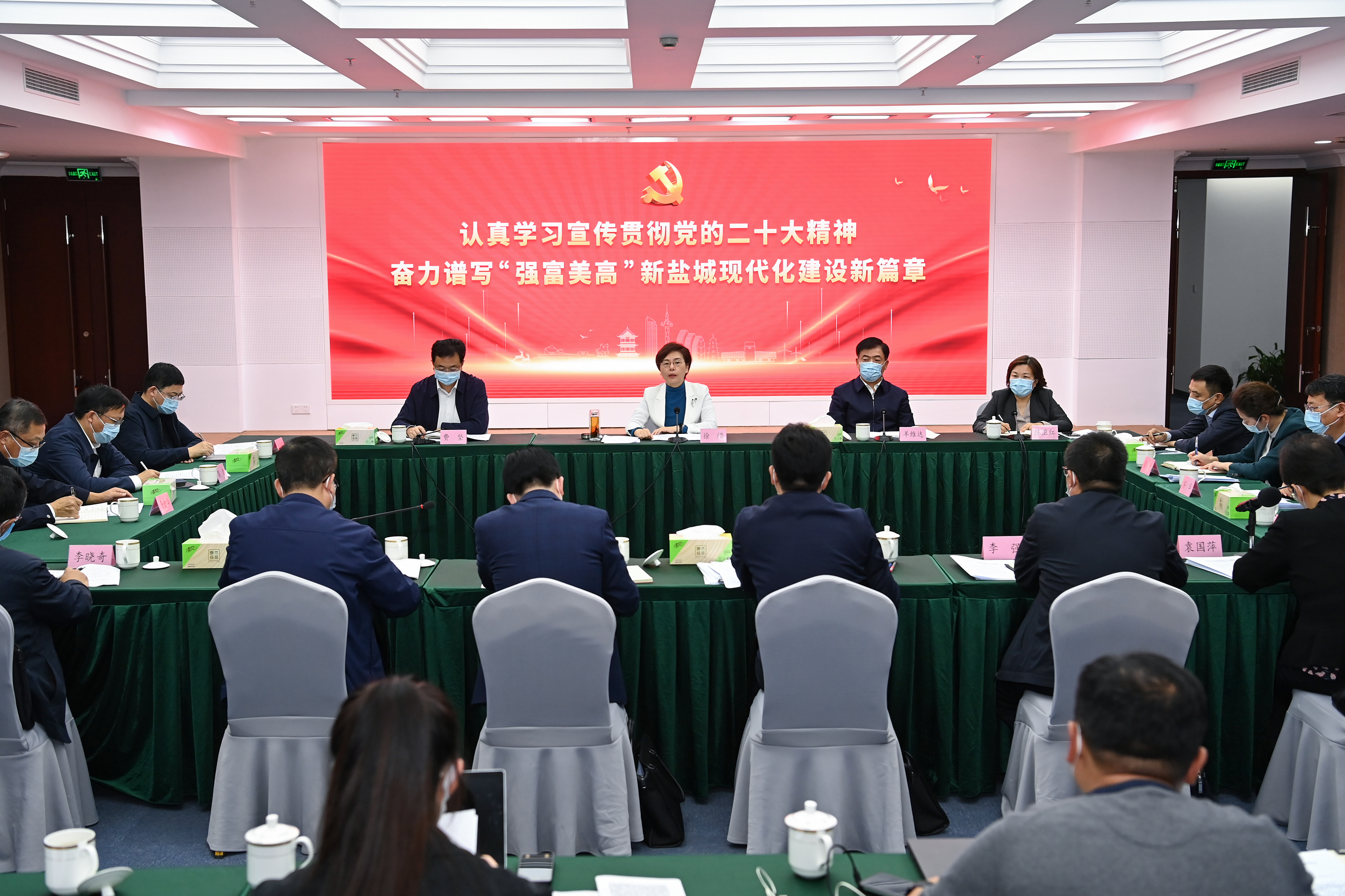 10月26日下午,市委書記徐纓走訪調(diào)研市主要新聞單位,召開座談會(huì)研究策劃部署我市學(xué)習(xí)宣傳貫徹黨的二十大精神工作。她強(qiáng)調(diào),全市上下要把學(xué)習(xí)宣傳貫徹黨的二十大精神作為頭等大事和首要政治任務(wù),在全面學(xué)習(xí)、全面把握、全面落實(shí)上下功夫,堅(jiān)持不懈用習(xí)近平新時(shí)代中國(guó)特色社會(huì)主義思想凝心鑄魂,深刻領(lǐng)悟“兩個(gè)確立”的決定性意義,緊緊圍繞習(xí)近平總書記“五個(gè)牢牢把握”重大實(shí)踐要求,按照中央和省委最新決策部署,迅速掀起學(xué)習(xí)宣傳貫徹?zé)岢?,確保黨的二十大精神入腦入心、落實(shí)落地,把學(xué)習(xí)成果轉(zhuǎn)化為競(jìng)逐新賽道、勇當(dāng)排頭兵,奮力譜寫“強(qiáng)富美高”新鹽城現(xiàn)代化建設(shè)新篇章的強(qiáng)大動(dòng)力。市委副書記、統(tǒng)戰(zhàn)部部長(zhǎng)羊維達(dá)參加。