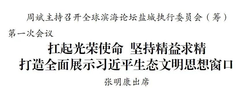 5月13日,市委書(shū)記周斌主持召開(kāi)全球?yàn)I海論壇鹽城執(zhí)行委員會(huì)(籌)第一次會(huì)議。他強(qiáng)調(diào),要深入學(xué)習(xí)貫徹習(xí)近平生態(tài)文明思想,深刻認(rèn)識(shí)辦好全球?yàn)I海論壇會(huì)議的重要意義,以高度的責(zé)任感和使命感,高標(biāo)準(zhǔn)謀劃、高水平籌備、高規(guī)格推進(jìn),更好展示發(fā)展成果、促進(jìn)開(kāi)放合作,為鹽城高質(zhì)量發(fā)展集聚更多資源、注入更強(qiáng)動(dòng)力。市委副書(shū)記、市政府黨組書(shū)記張明康出席。