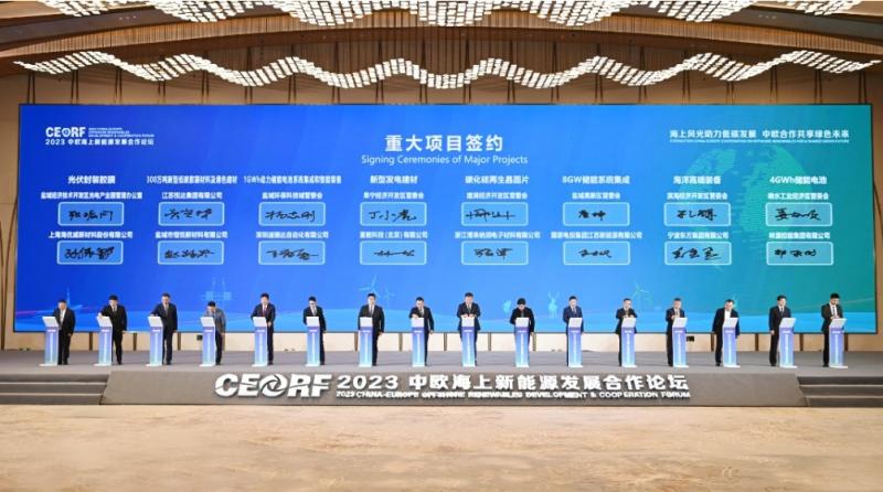 論壇發(fā)布了《2023中歐海上新能源發(fā)展合作論壇鹽城宣言》《公開征集海上光伏、海上能源島與新能源高比例應(yīng)用試點示范技術(shù)方案》《中歐漂浮式海上風(fēng)電關(guān)鍵技術(shù)與產(chǎn)業(yè)鏈對比分析與合作潛力研究報告》等,簽約了25個重大項目,總金額294.8億元,為進一步推動海上新能源技術(shù)創(chuàng)新與產(chǎn)業(yè)升級、深化中歐務(wù)實合作注入新動能。