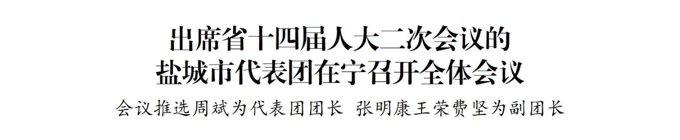 江蘇省第十四屆人民代表大會(huì)第二次會(huì)議將于1月23日上午在南京開幕。22日晚,鹽城市代表團(tuán)在駐地召開全體會(huì)議,傳達(dá)學(xué)習(xí)省兩會(huì)黨員負(fù)責(zé)同志會(huì)議精神和省委書記信長(zhǎng)星講話要求,推選代表團(tuán)團(tuán)長(zhǎng)、副團(tuán)長(zhǎng),宣布小組召集人名單,審議有關(guān)草案。
