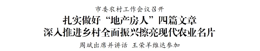 周斌指出,去年全市上下堅(jiān)持把“三農(nóng)”工作擺在全局工作的重中之重,穩(wěn)產(chǎn)保供彰顯擔(dān)當(dāng),產(chǎn)業(yè)發(fā)展加快起勢(shì),強(qiáng)村富民闖出新路,農(nóng)業(yè)農(nóng)村現(xiàn)代化邁出堅(jiān)實(shí)步伐。當(dāng)前,高水平建設(shè)農(nóng)業(yè)強(qiáng)市已經(jīng)從起筆謀劃進(jìn)入到加快實(shí)施的階段,“三農(nóng)”工作肩負(fù)的使命更加重大,必須切實(shí)增強(qiáng)做好“三農(nóng)”工作責(zé)任感使命感,準(zhǔn)確把握“三農(nóng)”工作定位、現(xiàn)階段主要任務(wù)、鄉(xiāng)村振興實(shí)現(xiàn)路徑,堅(jiān)定信心、乘勢(shì)而上,不斷提升鄉(xiāng)村產(chǎn)業(yè)發(fā)展、鄉(xiāng)村建設(shè)和鄉(xiāng)村治理水平,加快建設(shè)宜居宜業(yè)和美鄉(xiāng)村。