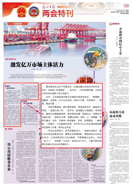 全國人大代表、市委書記周斌接受《經(jīng)濟日報》采訪
