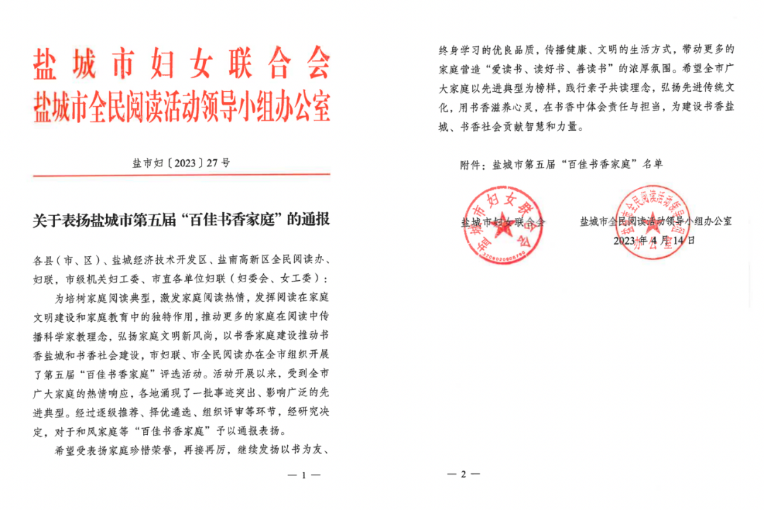 近日,從鹽城市婦女聯(lián)合會傳來好消息,在市第五屆“百佳書香家庭”評選活動中,集團下屬公司大豐港集團成品油公司職工顧浩家庭榮獲鹽城市“百佳書香家庭”稱號。