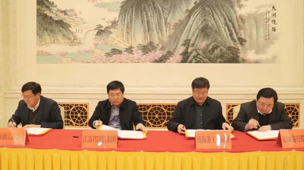 3月2日,濱海港工業(yè)園區(qū)、省國信集團(tuán)、中海油江蘇天然氣公司、鹽城港集團(tuán)在南京簽訂四方合作協(xié)議。市委常委、濱海縣委書記、濱海港工業(yè)園區(qū)黨委書記孫軼出席簽約儀式。集團(tuán)黨委書記、董事長、總經(jīng)理周正雄與三家合作單位相關(guān)負(fù)責(zé)同志共同簽訂《合作協(xié)議》。