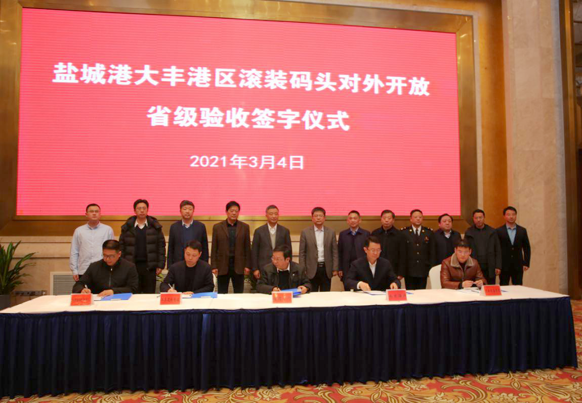 3月4日,由江蘇省商務(wù)廳、南京海關(guān)、江蘇邊檢總站、連云港海事局等查驗單位負(fù)責(zé)人組成的驗收組,對鹽城港大豐港區(qū)滾裝碼頭對外開放進(jìn)行省級驗收。副市長蔣巍出席并致辭、市相關(guān)部門同志參加。鹽城港集團(tuán)黨委書記、董事長、總經(jīng)理周正雄參加并介紹相關(guān)情況。