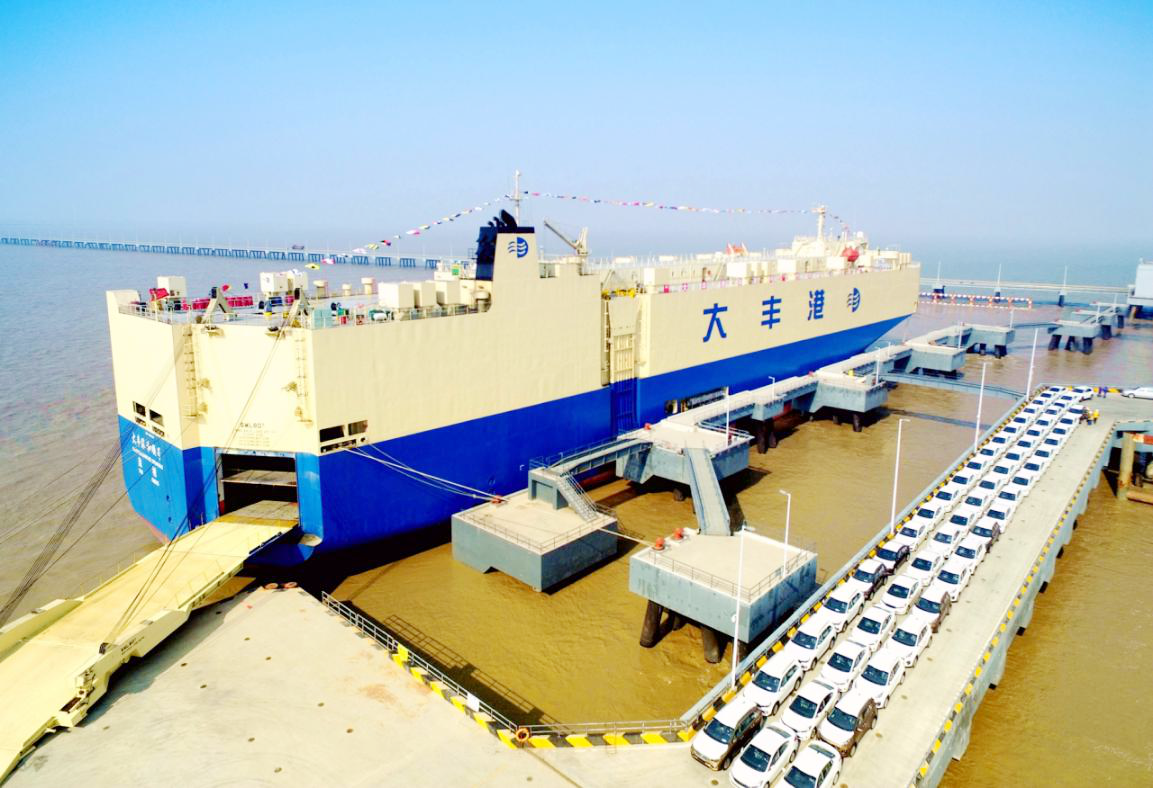 據(jù)悉,鹽城港大豐港區(qū)滾裝碼頭位于大豐港糧食碼頭南端的內(nèi)側(cè),泊位總長339米,碼頭前沿自然水深-13.5米,碼頭等級為7萬GT,碼頭水工建筑物包括系纜墩、靠船墩、便橋墩、艉跳平臺、轉(zhuǎn)角平臺及車道等。平臺與已建糧食碼頭相連長度為90米,平臺面標(biāo)高為7.0米,平臺平面尺度為60×45米,滿足汽車滾裝和貨物甩掛車輛在平臺上、下及掉頭轉(zhuǎn)彎的要求;碼頭設(shè)計年通過能力商品汽車23萬輛,集裝箱2.2萬TEU。