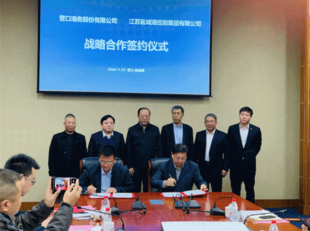 11月23-24日,集團(tuán)黨委書記、董事長、總經(jīng)理周正雄一行相繼拜訪營口港務(wù)集團(tuán)、大連港集團(tuán)以及遼寧港口集團(tuán),并與營口港、大連港、上海郁州海運(yùn)簽訂戰(zhàn)略合作協(xié)議,開通了鹽城港至營口港的集裝箱班輪航線。