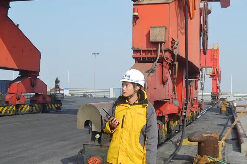2021年3月4日凌晨3時(shí),在鹽城港大豐港區(qū)集裝箱碼頭,海風(fēng)攜著冷空氣,直往人脖領(lǐng)子里鉆,一艘貨輪正靠泊鹽城港大豐港區(qū)集裝箱碼頭準(zhǔn)備卸貨?!按耙呀?jīng)安全靠泊,現(xiàn)在可以作業(yè)!”丁健手握對(duì)講機(jī)。在碼頭上尋找丁健的身影,簡直太容易了。因?yàn)楝F(xiàn)場調(diào)度都有一個(gè)顯著的標(biāo)志——黃色安全帽,在眾多的安全帽之間,它格外顯眼。此時(shí)丁健手持對(duì)講機(jī)、往來穿梭、步履匆匆。