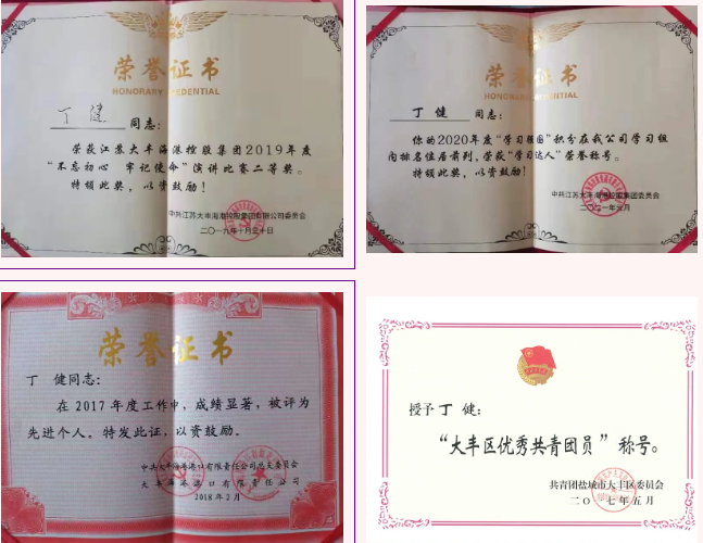 “這近十年的時(shí)間,我看到了我們大豐港人堅(jiān)守崗位,愛崗敬業(yè),一群大豐港人不斷追夢、筑夢,才有了我們大豐港今天的繁榮。在碼頭上,我們時(shí)常聽到老碼頭人講大豐港籌建時(shí),我們的領(lǐng)導(dǎo)深冬穿著黃大衣在碼頭值夜班,沒有躲風(fēng)避雨的地方,就躲到墩子后面避風(fēng),稍微暖和一點(diǎn)又要督促工程,日夜兼程。而如今的大豐港有房子、有空調(diào)、有配套齊全的設(shè)施。我們是踩著前輩們架好的云梯往上爬,只要我們繼續(xù)努力,大豐港的發(fā)展前景會(huì)越來越好。每每在順利拿下生產(chǎn)任務(wù)的那一刻,我的內(nèi)心總是如飲甘醴,如啜清泉?!倍〗≌f道。工作雖苦,丁健為了自己心中的那份責(zé)任,為了大豐港的發(fā)展,執(zhí)著向前,風(fēng)雨無阻。