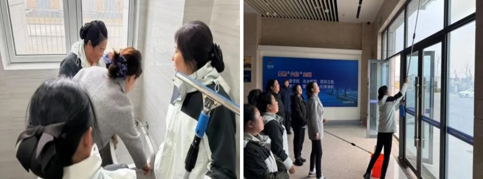 培訓(xùn)現(xiàn)場(chǎng)圍繞重點(diǎn)區(qū)域清潔、保潔工具使用技巧、保潔頻次和保潔規(guī)范等方面,采用現(xiàn)場(chǎng)教、實(shí)地訓(xùn)的方式,詳盡重點(diǎn),確保每位保潔員都能將作業(yè)技巧、標(biāo)準(zhǔn)要求了然于心。實(shí)操中,保潔組全員化身“清潔奇兵”,各司其職,嚴(yán)格按規(guī)范操作,以日常保潔、深度清潔、機(jī)制清潔的高標(biāo)準(zhǔn),為港區(qū)營(yíng)造了干凈、整潔的工作環(huán)境。