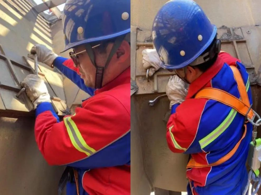 為從根本上解決這一問題,散貨碼頭分公司經(jīng)多方研究考量,決定對漏斗出料口進(jìn)行耐磨襯板加裝改造。改造前期,技術(shù)人員運(yùn)用專業(yè)測量工具,對漏斗出料口各部位進(jìn)行精確測量,從長度、寬度到弧度,每一個數(shù)據(jù)都反復(fù)核對,確保耐磨襯板與斗體實(shí)現(xiàn)無縫貼合。